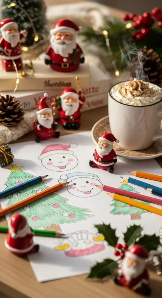 - Rosy cheeks: Light circular blush marks make Santa look extra cheerful.