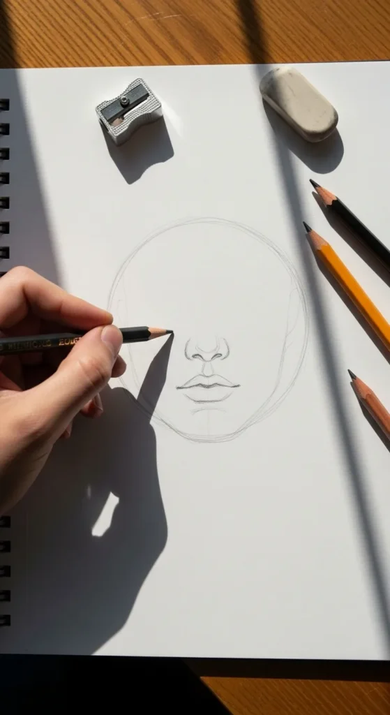 At this stage, keep everything light and erasable. You’re building the foundation for all the personality that comes next.