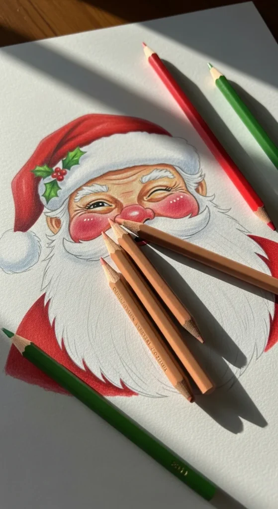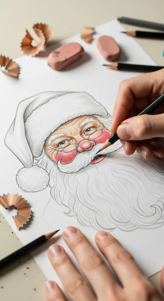 - Keep the cheeks slightly fuller to give Santa that warm, jolly look.